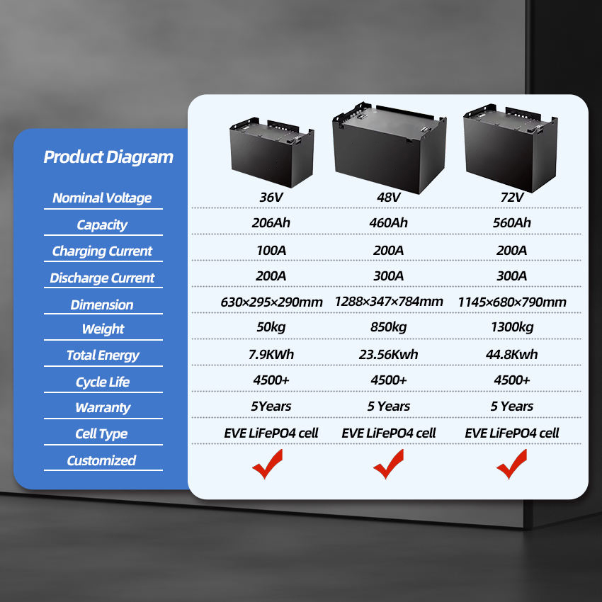 باتری لیتیومی یون Lifepo4 24v 36v 48v 72v 280Ah OEM ODM LiFePO4 باتری لیتیومی باتری لیتیومی قابل شارژ باتری گلف